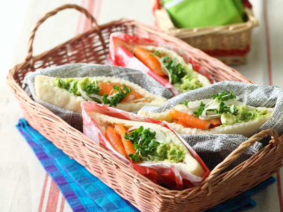一緒にお出かけしたくなる、春のピタパンレシピ。スモークサーモンに塩気がしっかりあるので、アボカドをクリームチーズで和えてまろやかに仕立て、オニオンやブロッコリースプラウトで食感をアップさせています。
