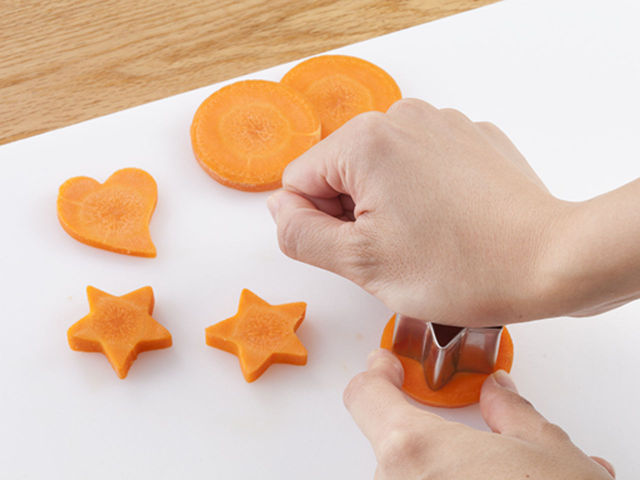 にんじんはハート型や星型で抜いてもOKですよ★一度輪切りにしてから型で抜いてね!かわいく切って、きれいに盛りつけしてみよう!!火を使うときは、やけどをしないように注意してくださいね!