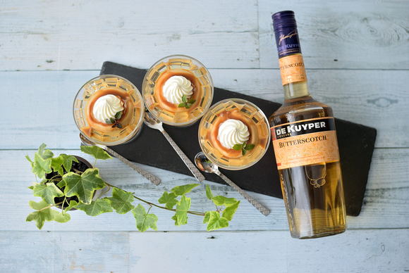 バタースコッチキャラメルで作ったトッピングのジュレが、キャラメルムースの濃厚さを引き立ててくれます。キャラメルの甘さがありながら、スッキリと食べられる別腹のデセールです。