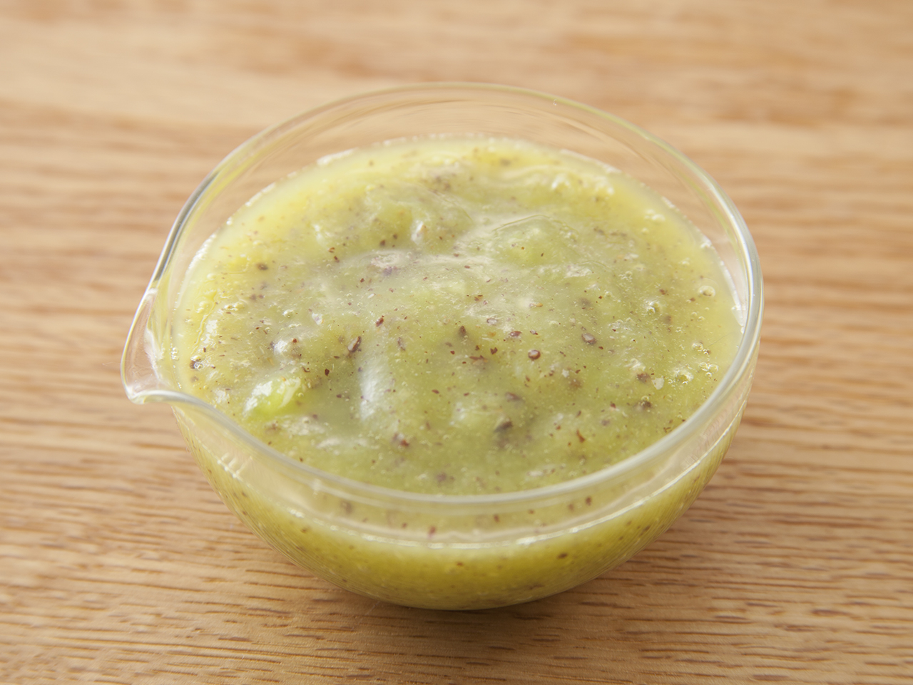 手づくりキウイソースをつくってみよう!!キウイ1個を細かく切り、「キリンレモン」大さじ1と一緒にミキサーにかければでき上がり~♪ キウイソースをかけるとおいしさ倍増です!包丁を使うときは手を切らないよう、気をつけて~!