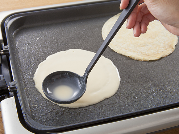 ホットプレートでも焼くことができます!!皆で食卓をかこんで、楽しめますよ~!パーティーにもおすすめです。火を使うときは、やけどをしないように注意してくださいね!