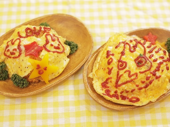 ケチャップで絵をかいて、周りに星形にくり抜いた野菜やパセリなどを飾る。