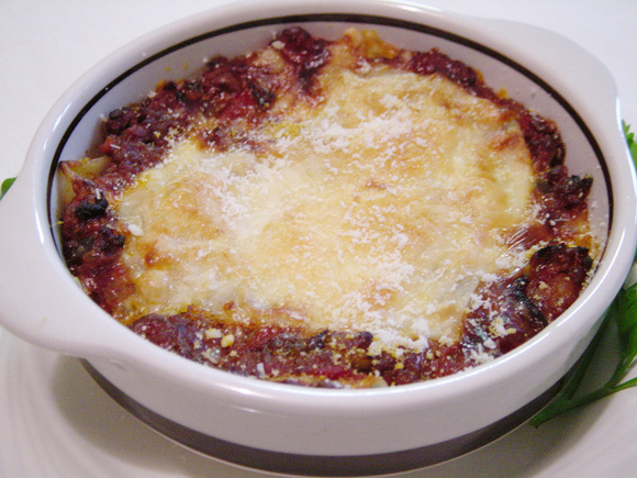 バレンタインデーの料理にもぴったりなように、一番上のパスタをゆでてからハート型に切ってみました。残ったラザニアは、ゆでてから太めに切れば、パッパルデッレ(幅広いパスタ)として使うこともできます。太めのパスタは、クリームソースなどの重たいソースに合います。