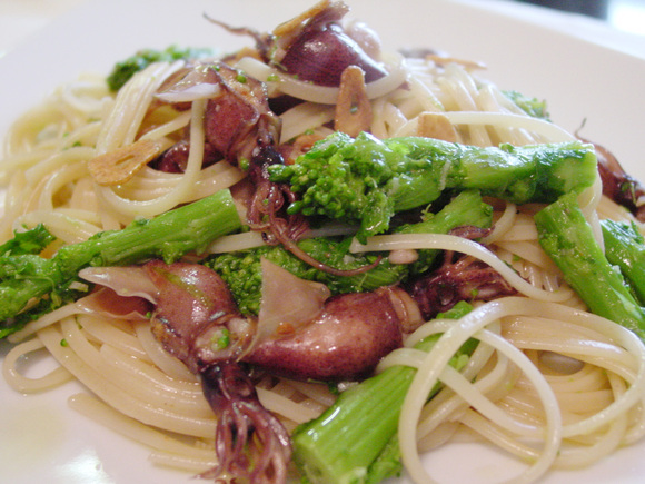 ほたるいかは、目・くちばし・骨を取りましたが、気にならない方はそのまま使ってもOKです。パスタはリングイーネを使いましたが、スパゲッティやスパゲッティーニでもかまいません。