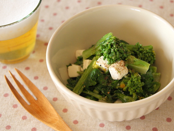 さっとゆでた菜の花とクリームチーズの組み合わせ。手軽に作れるDELI風サラダです。
