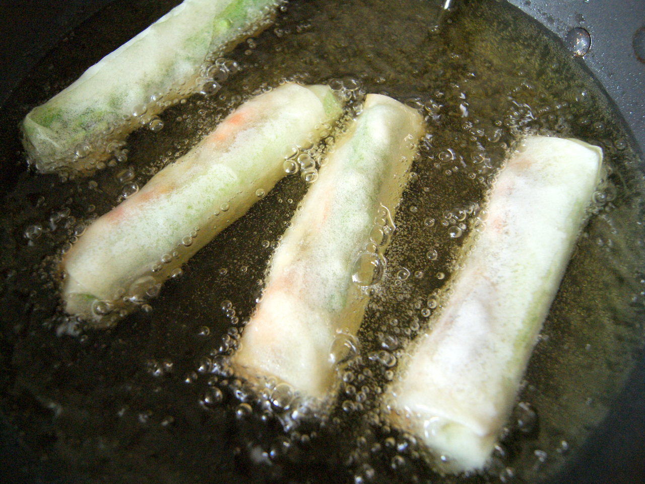 高温から揚げると表面に気泡ができることがあるので、春巻きを作る際は低温からじっくり揚げましょう。
