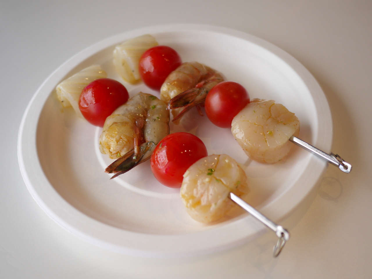 魚介をスパイシーにマリネして串焼きに。野外で楽しむバーベキューなどにぴったりの一品です!