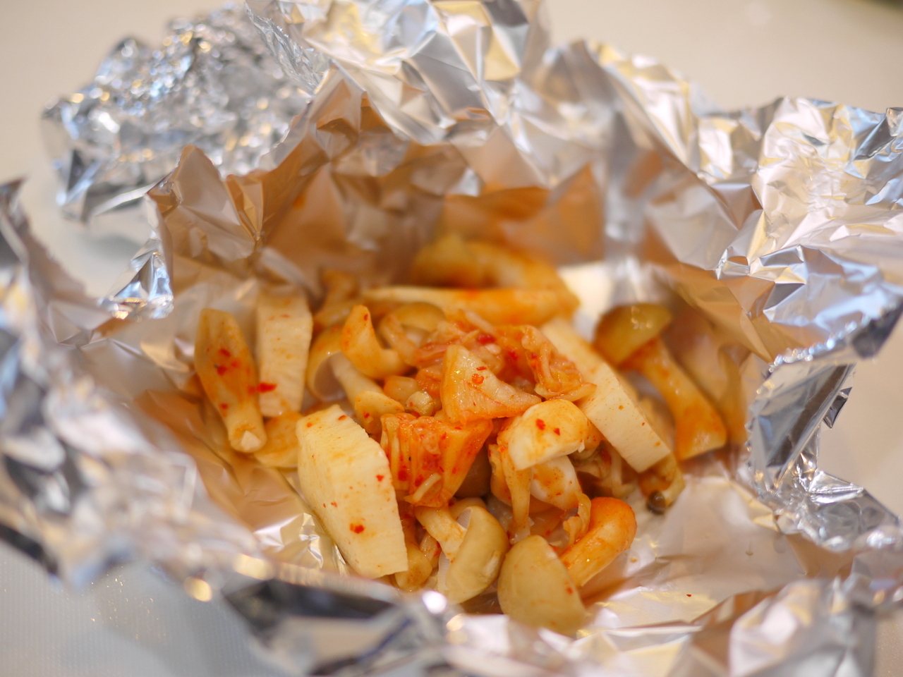 長芋やキムチをホイルで包んで蒸し焼きに。魚焼きグリルを活用したレシピです。