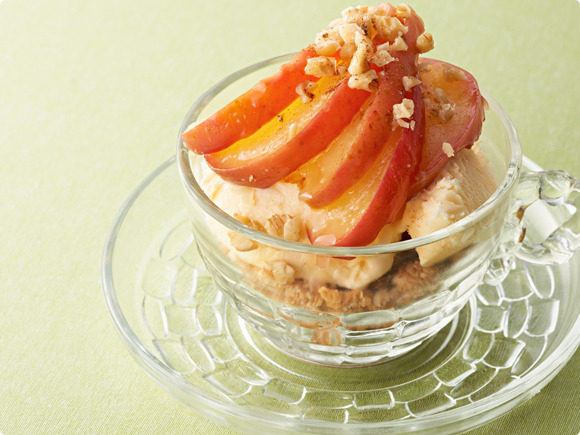 りんごがおいしい時期に作りたいお手軽スイーツをご紹介。レンジで3分加熱するだけでできるとろとろのりんごをタルト風にアレンジ。焼き立てのアップルパイのような熱々のりんごと冷たいアイスクリームの組み合わせが絶妙です。バレンタインディナーのデザートにいかがですか。