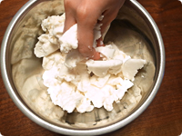 ボウルにはんぺんを入れ、手で握るようによくすりつぶす。かたまりが消えてなめらかになるまでしっかりと練る。