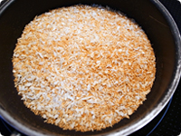 中火で熱したフライパンにパン粉を入れ、焦げないように1~2分菜箸などでかき混ぜながらきつね色になるまで乾煎りする。