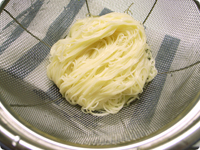 そうめんをゆでて冷水で洗い、水気をよく切る。