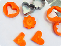 にんじんは1cm幅に切り、ハートの型などを使ってくり抜く。白菜は5㎝幅にざく切りにし、しめじは石づきを切り落としてほぐしておく。アボカドは皮をむいて種を取り、一口大に切る。