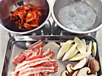 豚バラ肉は5cm幅、長ねぎは斜め切り、しいたけは石突きをとり薄切りにする。