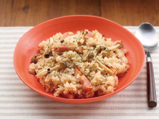 ・サフランの代わりに手に入りやすいカレー粉を使用。スパイシーな香りが食欲をそそります。