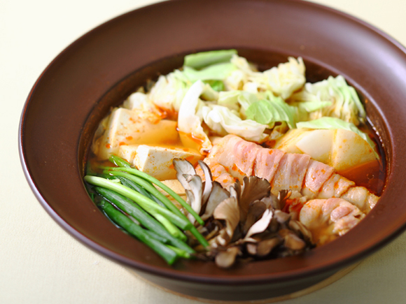 ニンニク、ショウガ、豆板醤、ラー油をたっぷりつかったスタミナ鍋。隠し味に白味噌をつかいコクを出しました。