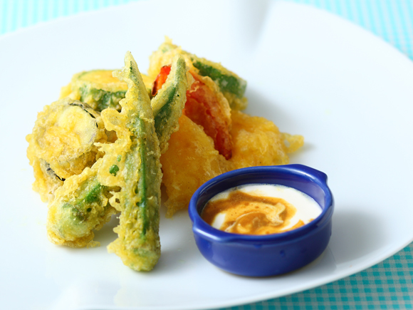 夏野菜のスパイシーフリット ヨーグルトマヨソース添え
