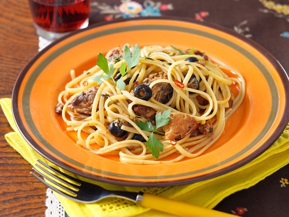 サバ味噌缶、ニンニク、唐辛子、オリーブだけで簡単にできるパスタ。香り付けにタイムを加えて爽やかに仕上げました。甘辛いサバ味噌の凝縮した味わいをリングイネに絡めてお楽しみください。